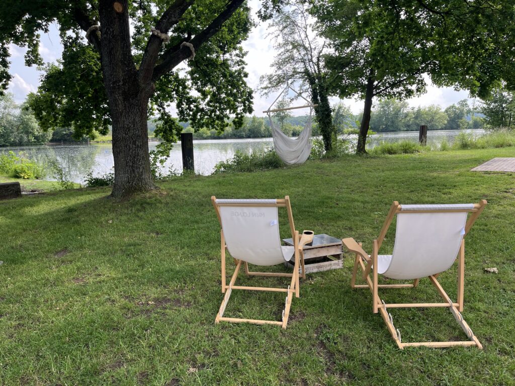 Mein Tageshighlight war tatsächlich kurz vor der Unterkunft in Gädheim: ein kleiner Selbstbedienungs-Kiosk direkt am Main, genannt Main Lounge, der Hängematte, Schaukel und diverse Sitzmöglichkeiten direkt am Main bietet, um bei einem Getränk, den Tag Revue passieren zu lassen.