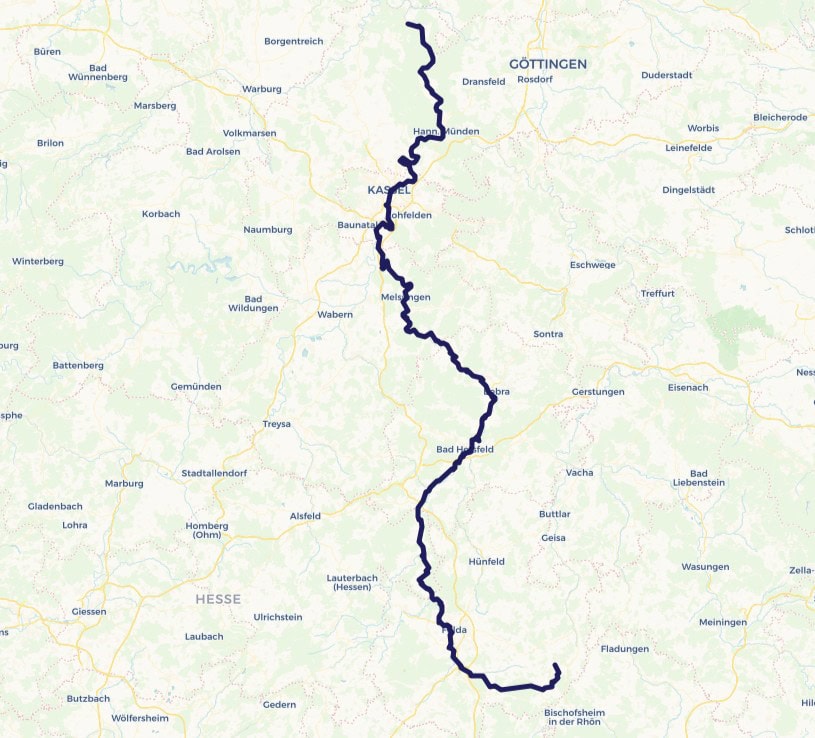 Die heutige Etappe beträgt nur etwa 35 Kilometer von Melsungen nach Kassel. Wer möchte, kann den Zwischenstop in Kassel auch überspringen und direkt bis nach Hann. Münden fahren. Da man in Kassel aber die Möglichkeit hat den Park Wilhelmshöhe anzuschauen, bietet es sich an, hier auch einen Zwischenstopp zu machen.